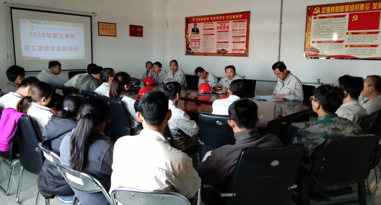 為了充分了解員工的思想動(dòng)態(tài),征詢廣大職工意見和建議,幫助員工解決工作和生活中的實(shí)際困難,加強(qiáng)員工隊(duì)伍建設(shè),體現(xiàn)公司以人為本的管理理念,促進(jìn)企業(yè)更加健康、和諧發(fā)展,寧夏興昊永勝鹽業(yè)科技有限公司于10月10日組織召開了2018年第三季度員工思想交流座談會(huì)。會(huì)議由鹽業(yè)公司總經(jīng)理尚繼榮同志主持,鹽業(yè)公司黨支部副書記王志杰、綜合科科長(zhǎng)張偉及職工代表列席參加會(huì)議。