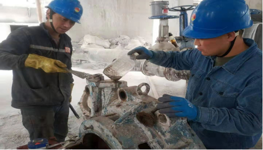穿過馬路,步入公司核心生產(chǎn)區(qū)域。在生料裝置各個(gè)現(xiàn)場(chǎng),1#號(hào)濃縮池底安裝渣漿泵,1#-16#刮板機(jī)下料口技改、堆料機(jī)1502皮帶硫化、循環(huán)風(fēng)機(jī)、尾排風(fēng)機(jī)、V選、混料機(jī)、輥壓機(jī)檢修的完成以及1102皮帶托輥檢查及軸承潤(rùn)滑的進(jìn)行。此時(shí),在酷暑下,一個(gè)個(gè)精神充沛的工友們頂著烈日的酷曬,正聚精會(huì)神的進(jìn)行著檢修作業(yè),他一只手扶著設(shè)備,一只手使勁的搬動(dòng)著板子,那動(dòng)作仿佛撫摸初生嬰兒的笑臉,那種眼神好似在說:孩子,你快成型了,等你成型組裝后,就會(huì)被帶動(dòng)其他設(shè)備和諧運(yùn)轉(zhuǎn)。他們是設(shè)備正常運(yùn)轉(zhuǎn)的一個(gè)個(gè)信使,傳遞著安全生產(chǎn),減輕勞動(dòng)強(qiáng)度,促進(jìn)人們對(duì)公司健康發(fā)展的美好祝愿。