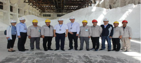 白鴻一行先后到興昊永勝鹽業(yè)公司鹽庫(kù)、鹽銷裝置、熱力裝置、企業(yè)文化展廳等地進(jìn)行實(shí)地調(diào)研,并在鹽庫(kù)進(jìn)行了合影留念。
