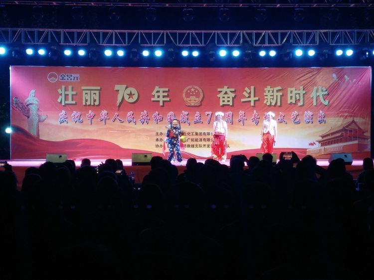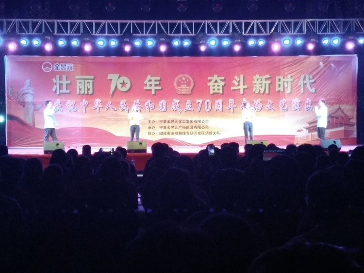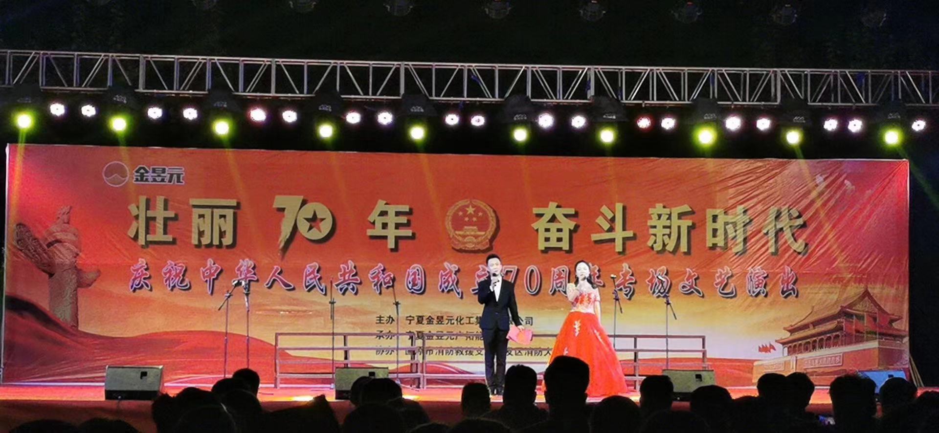 在新中國成立70周年來臨之際,寧夏金昱元化工集團(tuán)舉辦此次文藝匯演活動,不僅為廣大群眾奉獻(xiàn)了一場精彩的視聽盛宴,表達(dá)了各族人民對黨和祖國的熱愛和美好祝愿,更激發(fā)了大家愛國愛黨的熱情,增強了各級群眾的凝聚力、向心力。我們滿懷赤子之心,向祖國獻(xiàn)禮,用歌聲祝福祖國繁榮昌盛,祝福明天的中國更加美好!