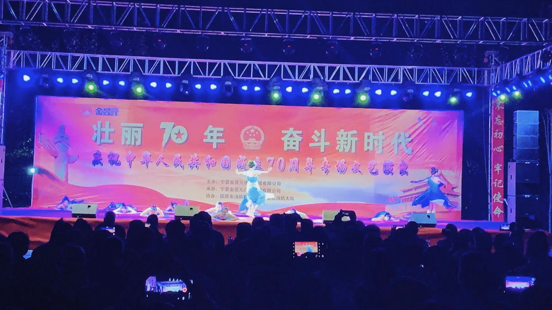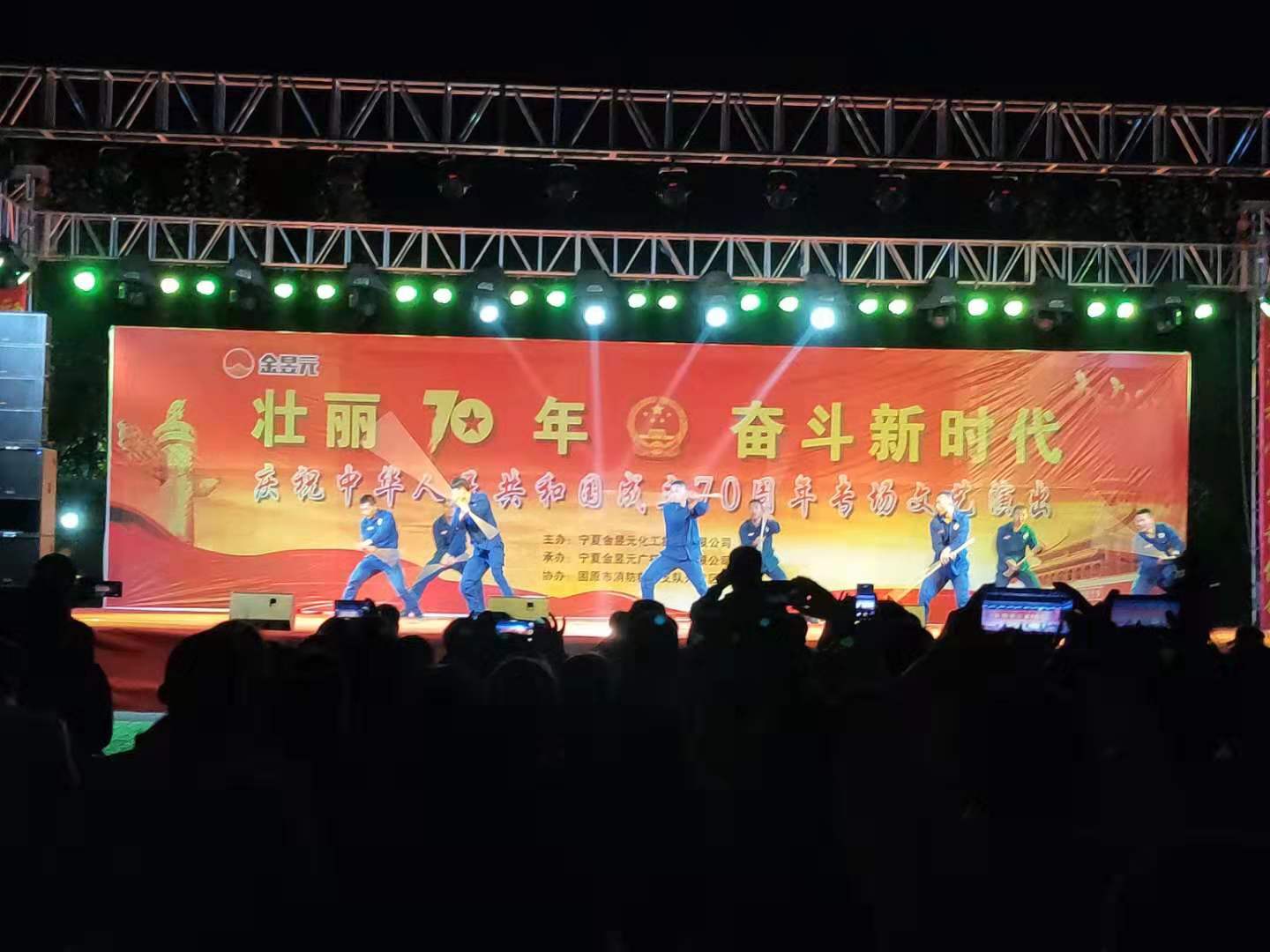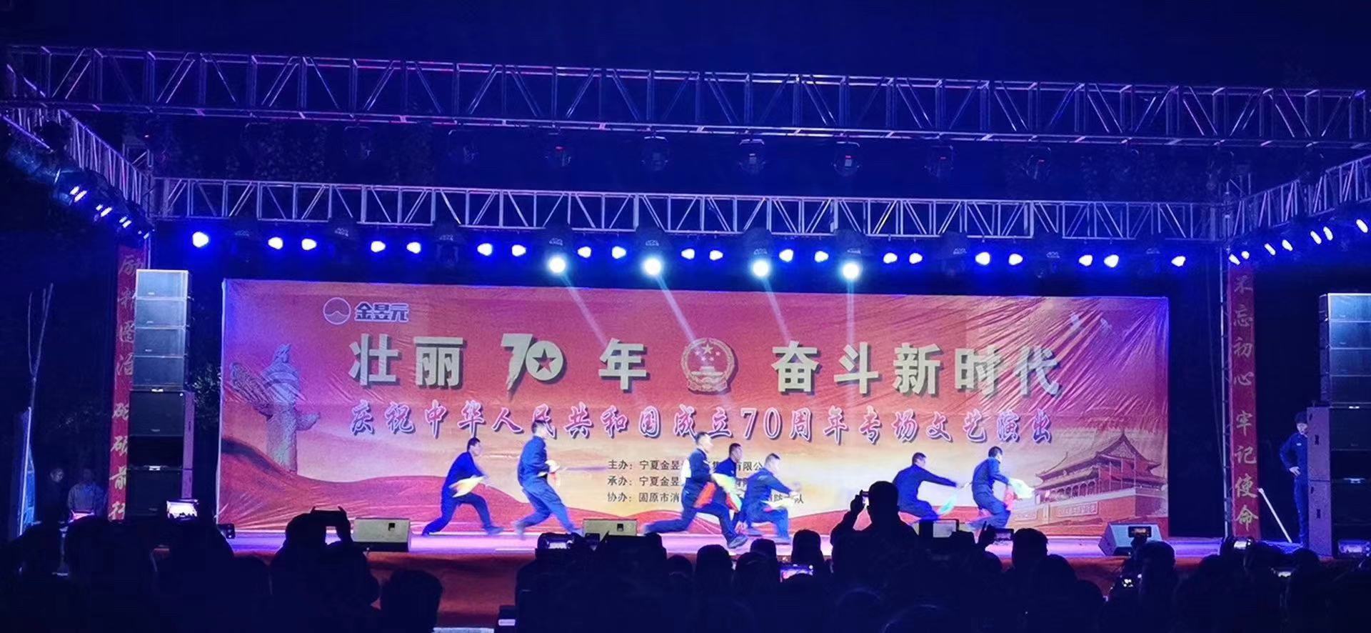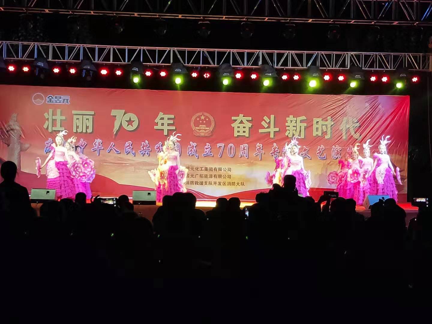 為慶祝新中國成立70周年,寧夏金昱元化工集團(tuán)攜手固原市開發(fā)區(qū)消防大隊舉辦了以“壯麗70年,奮斗新時代”為主題的文藝匯演晚會,2019年9月26日晚,文藝匯演來到固原片區(qū),固原經(jīng)濟開發(fā)區(qū)管委會,固原市工信局,固原市消防救援支隊開發(fā)區(qū)消防大隊,集團(tuán)公司、固原片區(qū)相關(guān)領(lǐng)導(dǎo)以及各子公司職工代表,外協(xié)單位共計400余人觀看了本次文藝匯演活動。