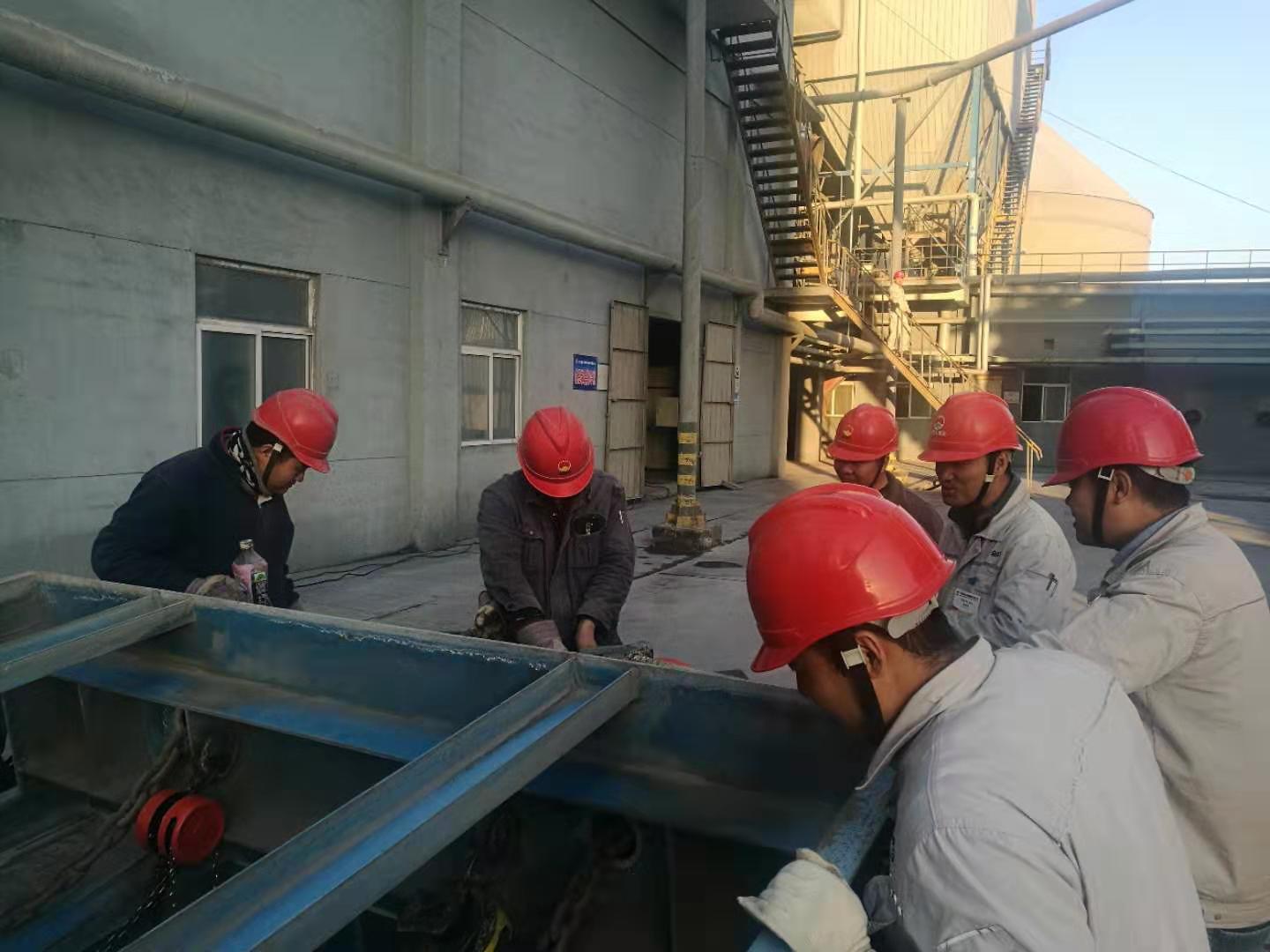 一、成品裝置長黃勃強帶領(lǐng)維修工對均化庫底空氣斜槽技改,認真辦理受限空間作業(yè)票證。指導(dǎo)維修人員計算材料,核對圖紙,然后利用簡單的工具就地進行比劃!