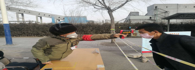 在園區(qū)南門,面對寒風,他們從容不迫,是責任,更是忠誠的奉獻。當日截止下午17時整,他們檢測、消毒、登記車輛53輛,人員53人,車輛正常,人員體溫均在正常范圍。