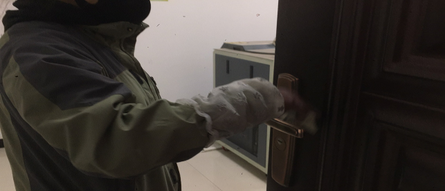 擦拭操作臺、門把手,工作的有條不紊。
