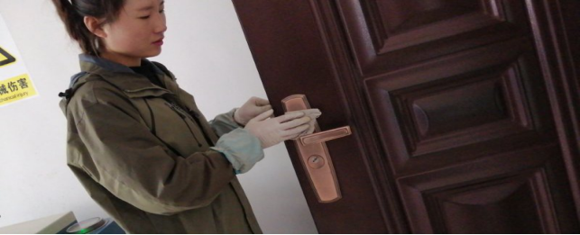 擦拭操作臺(tái)、門把手,工作的有條不紊。