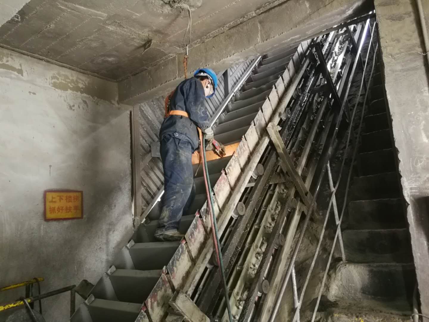 來到回轉(zhuǎn)窯檢修現(xiàn)場(chǎng),熟料鏈斗機(jī)猶如一條巨龍矗立在45度斜廊上,維修工掛著安全帶對(duì)每個(gè)鏈斗詳細(xì)的進(jìn)行檢查,發(fā)現(xiàn)有松動(dòng)的馬上進(jìn)行維護(hù),確保檢修后鏈斗機(jī)能安全穩(wěn)定的運(yùn)行。