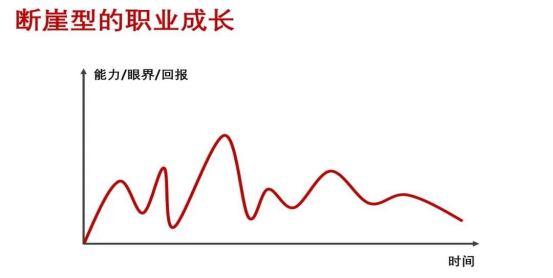 這一類職業(yè)發(fā)展路徑,我稱之為“斷崖式”成長(如下圖):