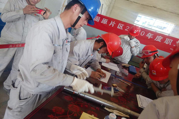 為了切實加強職工隊伍建設(shè),提高維修人員操作技術(shù)水平,同時也為了提高維修隊伍的整體素質(zhì),倡導我公司維修人員成為一專多能的綜合性技術(shù)人才,并積極運用到實際工作中。比賽開始,首先進行的是零件測繪,我們的參賽人員用專業(yè)的測繪工具對零件的每個部分進行了測量。隨后進行的是離心泵的組裝與拆卸,隊員們熟練有序的將各個部件組裝在一起,由一堆零部件變成了一臺完整的離心泵。在比賽過程中選手們以實際行動踐行“我的崗位我負責、我的任務(wù)我完成”的精神。使各自的業(yè)務(wù)水平和實際操作技能得到了很大的提高。