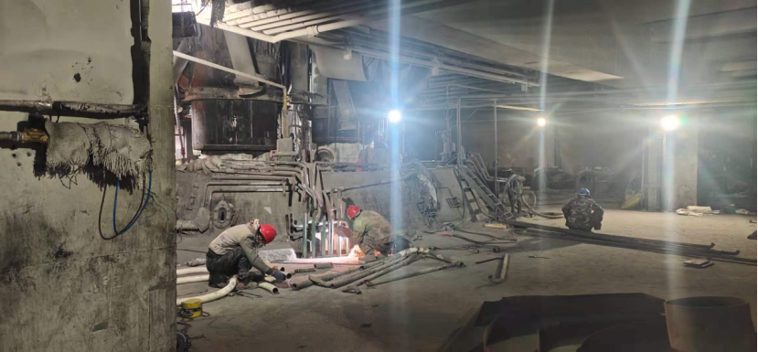 此次大檢修的項(xiàng)目包括:更換部分循環(huán)水管,檢查電極本體,打磨補(bǔ)焊水冷套,消除爐蓋漏點(diǎn),更換過(guò)濾倉(cāng)粗煤氣彎管等一系列大型檢修項(xiàng)目,為之后的設(shè)備保養(yǎng)工作起到了良好的鋪墊作用。此次檢修工作順利進(jìn)行,離不開(kāi)本裝置檢修工人和其他裝置維修工的團(tuán)結(jié)互助,無(wú)私奉獻(xiàn),他們?nèi)蝿谌卧沟墓ぷ鲬B(tài)度值得我們敬佩。他們的英姿如同