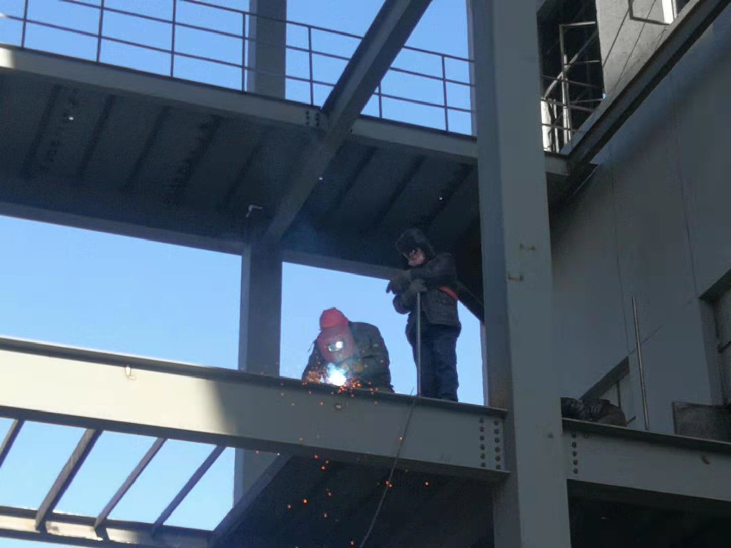 清晨的天,陰沉沉的。雖然跟前幾天比起來溫度有所回升,但呼呼的北風(fēng)還是讓人感覺寒冷。走進(jìn)技改現(xiàn)場,龐大的吊車正在吊裝作業(yè)。高高的原料輸送斜廊上幾個(gè)身影系著安全帶等待著彩板的到來。吊車旁邊的指揮者,穿著厚厚的棉襖,拿著對講機(jī),高高的仰著頭在觀察吊物情況,確保吊裝過程的安全。我抬頭仰望,數(shù)十米高的平臺(tái)上,幾個(gè)身影若隱若現(xiàn),隱約能看到他們的安全帽在鋼結(jié)構(gòu)后面來回躍動(dòng)。