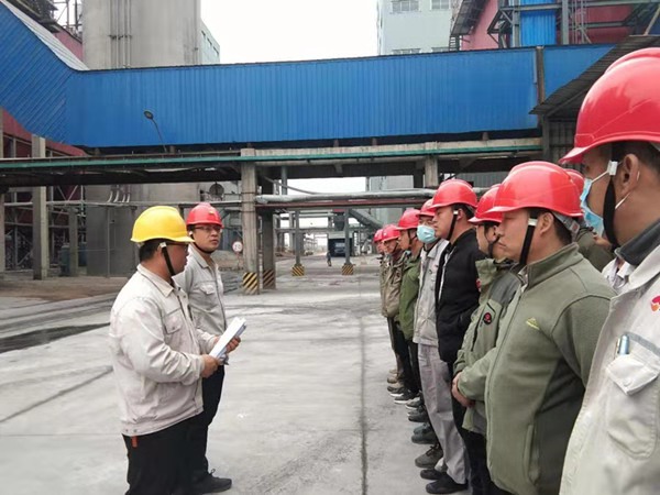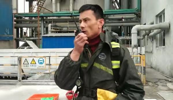 各組人員迅速展開搶險救援步驟。調(diào)度張培基抽調(diào)班組義務(wù)消防員攜帶應(yīng)急物資(正壓式空氣呼吸器、酸堿手套、防毒面罩、警戒帶、雨鞋、雨衣、應(yīng)急藥箱)至2#脫硫配漿池處集合……以氨罐區(qū)為中心點,將半徑20米范圍內(nèi)人員進行疏散,根據(jù)風(fēng)向標(biāo)指示情況,將人員轉(zhuǎn)移至上風(fēng)口安全地帶,對泄漏點南側(cè)、北側(cè)、西側(cè)三面警戒隔離,防止無關(guān)人員進入;義務(wù)消防員佩戴正壓式空氣呼吸器,穿防護服至脫硫罐區(qū)打開噴淋裝置,落實泄漏點具體位置,稀釋有毒氣體,并立即對泄漏點進行修復(fù)。經(jīng)過15分鐘的現(xiàn)場搶險救援,氨水泄露得到有效控制。