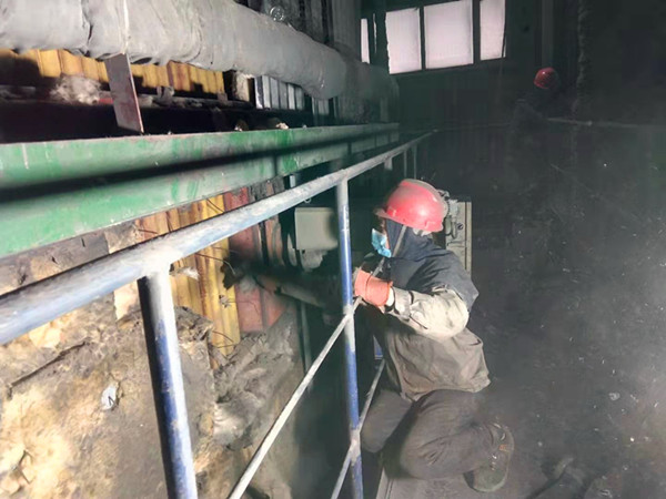 在檢修現(xiàn)場,隨處可見檢修人員忙碌的身影,他們不斷的變換著動作,靈活地使用各種型號的工器具。檢修過程中每一個起吊都小心翼翼,每一個動作都井然有序。只看見熱力裝置長毛文軒從爐膛狹小的人孔鉆進(jìn)爐膛,借助二十多米高的腳手架,對水冷壁管的磨損情況進(jìn)行細(xì)致檢查,對澆注料、燃燒器、過熱器等受損情況也進(jìn)行了逐一查看。他帶領(lǐng)熱力裝置全員由點到面,由里到外、全方位監(jiān)管督導(dǎo),有效提升檢修質(zhì)量。