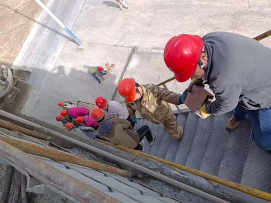 4月11日晚間22時50分許,回轉(zhuǎn)窯筒體24.5米處出現(xiàn)紅窯現(xiàn)象,根據(jù)經(jīng)驗,初步判斷是窯磚脫落;剞D(zhuǎn)窯系統(tǒng)止料,計劃挖補(bǔ)。安環(huán)生產(chǎn)科科長張振忠得知消息后,立即向各級領(lǐng)導(dǎo)進(jìn)行了逐級匯報,他們不約而同的在第一時間趕回廠里,立即采取相應(yīng)措施,迅速組織搶修。12日凌晨1:40分許,全體管理人員及崗位巡檢人員頂著寒風(fēng),組織實施第一步搶搶修工作——打開窯門,進(jìn)行降溫。上午8:00分,公司領(lǐng)導(dǎo)緊急召開搶修前技術(shù)和安全交底,調(diào)集人員,冒著窯內(nèi)高溫,進(jìn)行邊卸料邊轉(zhuǎn)運(yùn)邊挖補(bǔ)工作。按照分工,全體參戰(zhàn)人員都在緊張有序的忙碌著。