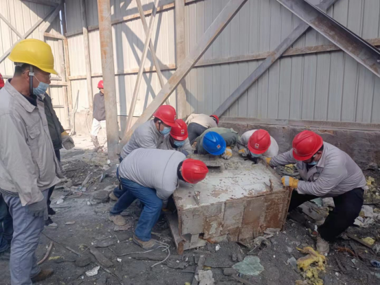 勞動中,全體管理人員充分展現(xiàn)了不怕臟、不怕苦、不怕累,勇挑重?fù)?dān)的良好精神風(fēng)貌。大家熱情高漲,樂在其中。他們有的幾人一組將管件、無法修復(fù)的配件、鋼材邊角料從積料區(qū)域的備件先抬出來,將可利用的鋼板、鋼絲繩等備件挑選出來,用鏟車將積壓物料的廢鐵器翻出來;有的忙著把一些可回收的風(fēng)機(jī)用氣割剝,拆下修好后作為備件以備不時(shí)之需……
