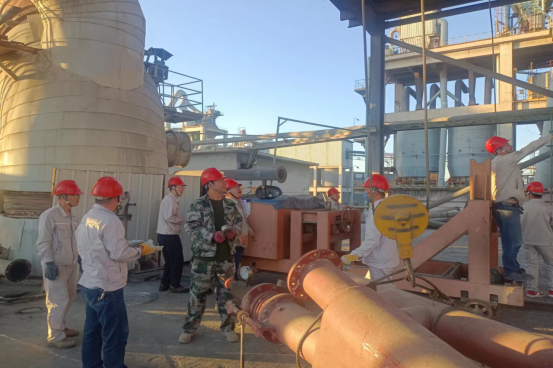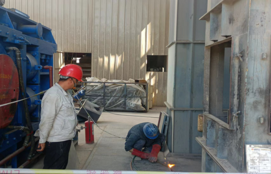 最繁忙、最艱苦的時(shí)段,從上午6:00分至下午17:20分,他們頂酷暑堅(jiān)守在挖補(bǔ)窯磚、更換噴煤管的一線現(xiàn)場。烈日下,有的實(shí)施清理挖補(bǔ)窯磚、有的丈量計(jì)算、有的指揮進(jìn)行吊裝、有的進(jìn)行切割、焊接……