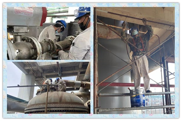 夏日炎炎,維修人員在高溫下對設(shè)備進(jìn)行檢修,不怕苦不怕累,裝置及時提供飲用水,防止人員在檢修的過程中發(fā)生中暑,同時及時的完成工作任務(wù),保障生產(chǎn)運(yùn)行正常。在檢修中,堅(jiān)持安全第一,揮灑汗水,關(guān)鍵時刻義無反顧,挺身而出,困難面前,毫無退卻,只為檢修工作安全。