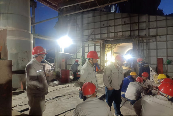 從9月14日00時(shí)00分到9月30日8時(shí)26分回轉(zhuǎn)窯點(diǎn)火升溫,再到10月1日00時(shí)40分回轉(zhuǎn)窯投料,資源循環(huán)公司圍繞回轉(zhuǎn)窯內(nèi)耐火材料更換施工、更換液壓擋輪、烘干破工藝管道、動(dòng)態(tài)選粉機(jī)內(nèi)耐磨涂層修復(fù),更換出口管道及膨脹節(jié),補(bǔ)焊殼體內(nèi)襯、篦冷機(jī)側(cè)墻、煙室斜坡、分解爐錐部、煙室縮口、三次風(fēng)管內(nèi)部、窯口澆注料的澆筑、1909提升機(jī)實(shí)施大修,更換整套板鏈、部分料斗、尾輪、全廠11臺(tái)變壓器除塵及試驗(yàn)、窯尾在線監(jiān)測系統(tǒng)安裝、調(diào)試等16個(gè)重點(diǎn)大修項(xiàng)目,歷時(shí)16天,在全體參檢工友們不辭辛苦、夜以繼日的拼搏奮斗下,按時(shí)間節(jié)點(diǎn)安全有序圓滿完成59項(xiàng)檢修項(xiàng)目,其中小修18項(xiàng)、中修25項(xiàng)、大修16項(xiàng),為圓滿實(shí)現(xiàn)“降本降耗,開源節(jié)支”活動(dòng)奠定了堅(jiān)實(shí)的運(yùn)行基礎(chǔ)。
