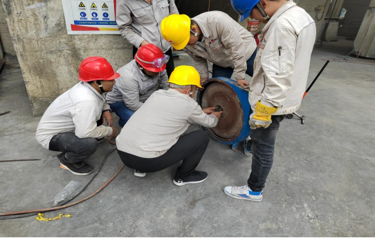 “加油、加油......”9月30日上午7時(shí)00分,一夜沒有眨眼的總經(jīng)理吳紅衛(wèi)同志,身先士卒,再次深入預(yù)熱器檢修現(xiàn)場,與公司領(lǐng)導(dǎo)班子、生產(chǎn)科室負(fù)責(zé)人、專業(yè)主管、裝置管理人員及參檢人員一同進(jìn)行裝置開工前的準(zhǔn)備工作——工藝管道疏通。