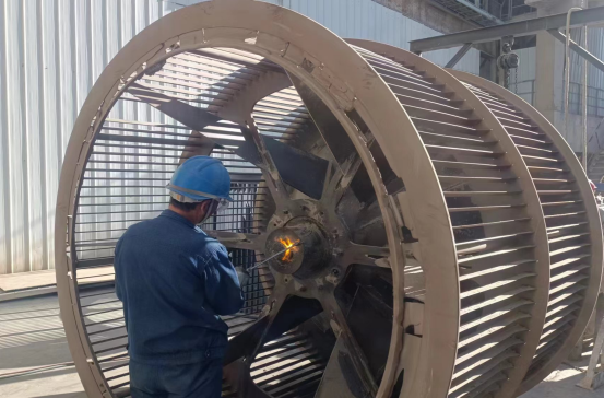 窯尾電收塵改造、節(jié)能風(fēng)機改造、回轉(zhuǎn)窯窯磚更換……一處處作業(yè)點,焊光閃爍。安全交底、受限空間氧含量檢測……一組組檢修隊伍激戰(zhàn)正酣,他們時而輪流揮舞大錘敲打螺栓,時而切割,時而焊接,時而鉆進狹小的空間……每一項都是力氣活,也是技巧活,耗時耗力,往往一錘下去,不起作用,那螺栓、那固件,是銷是鍵,絲毫不動,但他們從未灰心。他們兩人一組,一個人打錘,另一個人扶著扳手,防止扳手飛出去傷人。這雖然只是一個小細節(jié),但足以代表我們檢修隊伍是一支訓(xùn)練有素的隊伍,我們的員工能將安全檢修做得恰到好處。