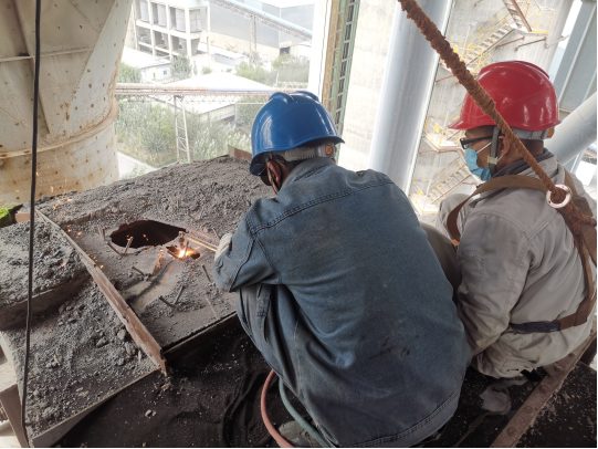 安全有了著落,檢修任務(wù)就要穩(wěn)中求進(jìn)。雖然每天日出而做,日落而息,繁重的任務(wù),疲勞的身體都會(huì)使我們意志消退,但是當(dāng)我們?cè)谝灰剐菹⒅械玫匠渥阊a(bǔ)充,在清晨看到明媚的陽(yáng)光,瞬間斗志昂揚(yáng),將揮汗如雨的激情灑落在電收塵、烘干破,預(yù)熱器的每個(gè)工作點(diǎn)上。
