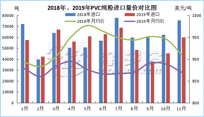 3.1 2019年聚氯乙烯PVC進(jìn)口量?jī)r(jià)分析