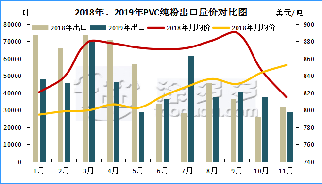 3.2 2019年聚氯乙烯PVC出口量?jī)r(jià)分析