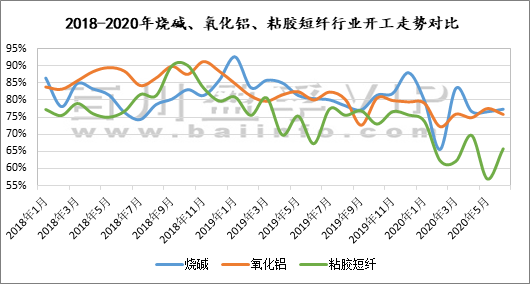 從開工率方面,根據(jù)百川統(tǒng)計數(shù)據(jù),2020年1-6月粘膠短纖平均開工率為65.1%,同比2019年1-6月平均開工率74.9%下滑13.1%;2020年1-6月氧化鋁平均開工率為75.9%,同比2019年1-6月平均開工率81.61%下滑7%。