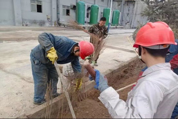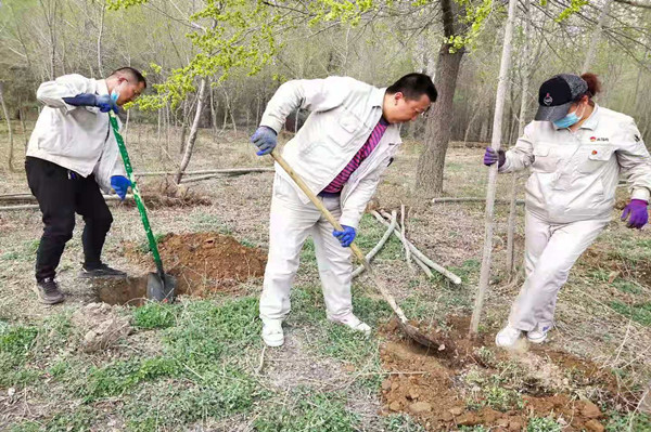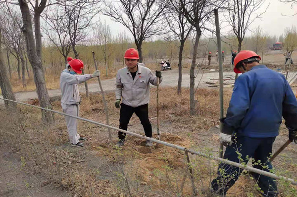 參加植樹(shù)的職工一到現(xiàn)場(chǎng),便投入到火熱的工作中。大家或揮鍬挖坑,或扶苗培土,或提桶澆水,所有人齊心協(xié)力、相互配合,現(xiàn)場(chǎng)一片繁忙景象。