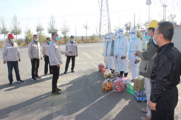 為提振士氣、鼓舞斗志,堅決打贏疫情防控阻擊戰(zhàn),10月31日、11月1日,寧夏金昱元化工集團股份有限公司總裁喬冠榮,監(jiān)事會主席郭復生,黨委副書記尚興,副總裁、固原片區(qū)總經理王立軍,副總裁、青銅峽片區(qū)總經理張立軍等領導組成慰問組,分別到固原片區(qū)和青銅峽片區(qū)各疫情防控卡點慰問奮戰(zhàn)在一線的防疫人員。
