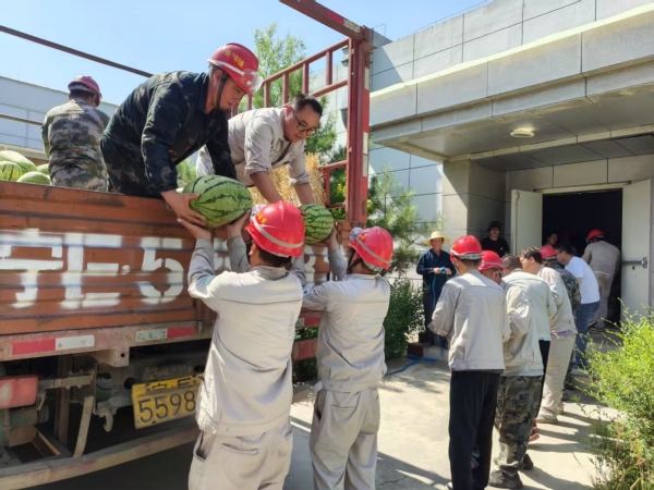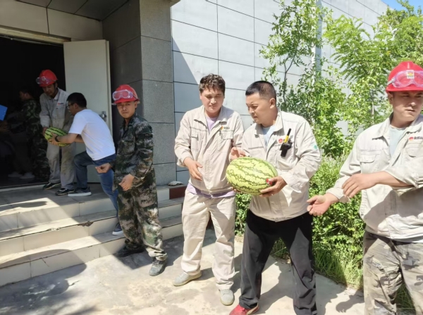 活動(dòng)期間,固原基地工會(huì)深入現(xiàn)場(chǎng),將防暑西瓜分發(fā)到職工手中,為身處高溫工作環(huán)境的職工送去陣陣清涼。同時(shí)對(duì)奮戰(zhàn)在一線的職工致以親切問(wèn)候,并囑咐大家做好高溫防護(hù),鼓勵(lì)大家在繁忙的工作中積極發(fā)揮勞模精神、工匠精神,為高溫季節(jié)安全生產(chǎn)保駕護(hù)航。